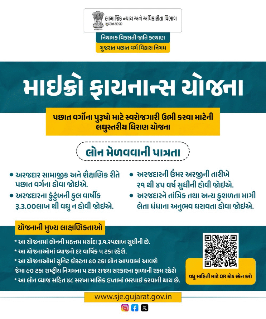 The Micro Finance Scheme (8514) is one of the most beneficial self-employment schemes in Gujarat 2025.